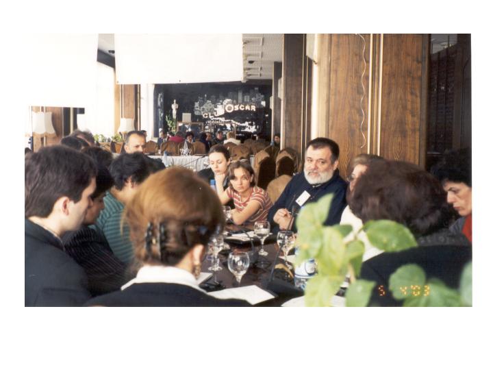 Miljenko Dereta of Civic Initiatives (center) leading a working group at the Baku Centers for Pluralism Meeting in 2003.