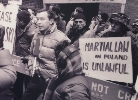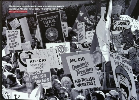 The Committee in Support of Solidarity's first demonstration protesting martial law in Poland, joined by the AFL-CIO, on December 19, 1981 (republished from Zygmunt Malinowski's photo album "New York: City of Solidarity: Demonstrations in Support of Solidarity: 1981-82).